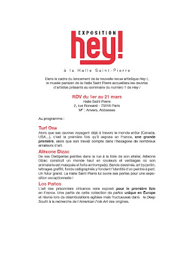 Paris show Posted 2010/02/13 by Turf One For all you french speaking people out there : Here are a few more informations regarding the show in Paris this coming MArch, at Musée de la Halle St Pierre, as well as “Hey!” magazine…English version coming soon…