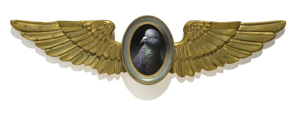 Cacandos Cacamus Posted 2026/01/27 by Turf One acrylic and oil on panel, vintage Italian frame and vintage gilt wood carving, appx. 24.5x6x1.5” 2025