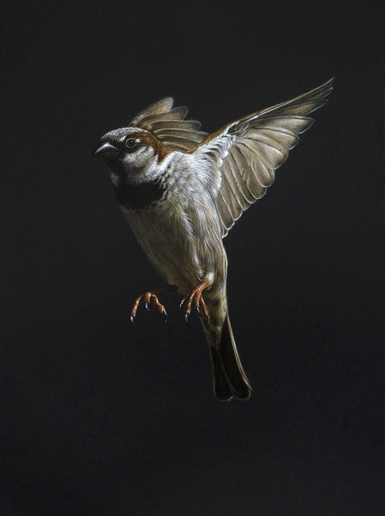 Flutter Posted 2026/01/27 by Turf One acrylic and spray on panel, early 20th century antique oak frame, appx. 15.25×11.75x 0.75” 2025