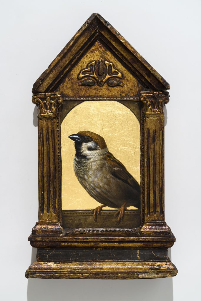 Shrine Posted 2025/12/15 by Turf One Acrylic and gold leaf on wood, vintage Italian frame, 10.5×6” 2024