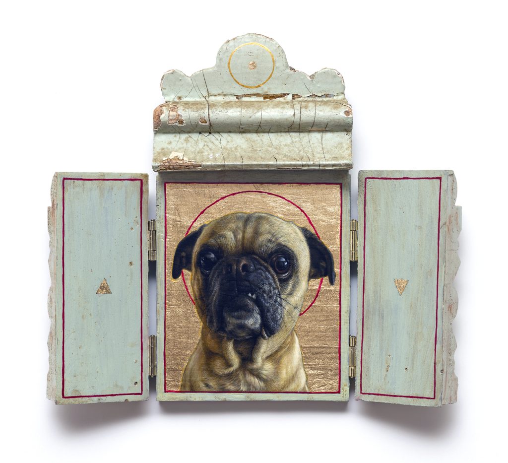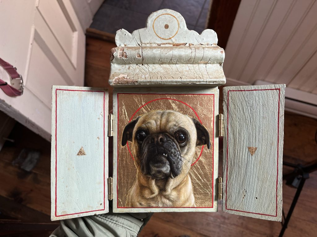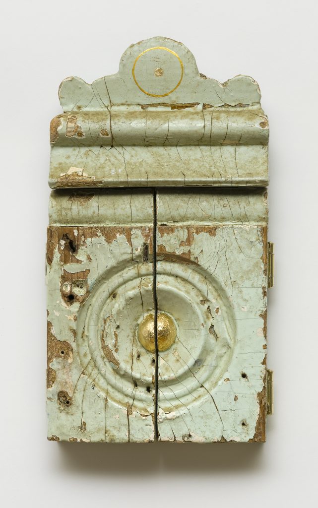 Stanly Posted 2026/01/15 by Turf One acrylic and gold leaf on wood and antique moulding 10″x6″ (opened), 5″x6″ (closed) 2025